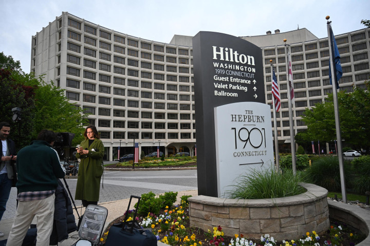 ▲4月26日,媒体连合在华盛顿希尔顿酒店外据视觉中国