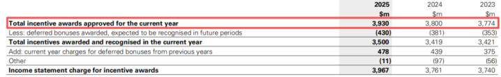 2016年至2025年这10年间,除了受疫情影响的2020年,汇丰奖金池总额均在30亿好意思元以上。