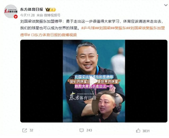 “樊振东完成大满贯后还敢走出餍足区,这么的勇气值得学。体育无国界,只消打得好,便是最佳的软实力通常。”