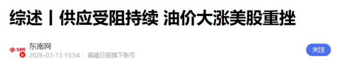 1.《综述丨供应受阻络续 油价大涨好意思股重挫》2026-03-13 15:54 | 开端:东南网