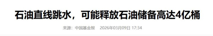 3.《石油直线跳水,可能开释石油储备高达4亿桶》2026-03-09 17:34 | 开端:中国动力网