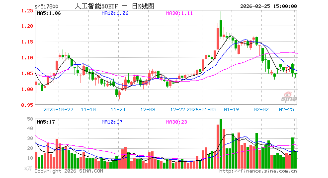 2月25日,东谈主工智能50ETF(517800)跌0.29%,成交额1767.11万元。当日份额增多600.00万份,最新份额为4.39亿份,近20个往改日份额增多8300.00万份。最新钞票净值想象值为4.57亿元。