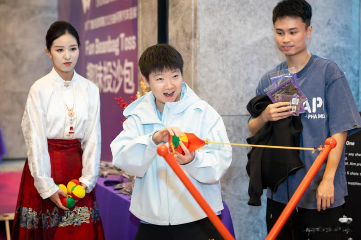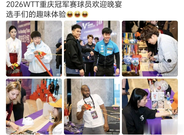 亚博 重庆冠军赛晚宴, 孙颖莎玩弹弓游戏, 大迪笑的喜庆, 陈熠体验好意思甲