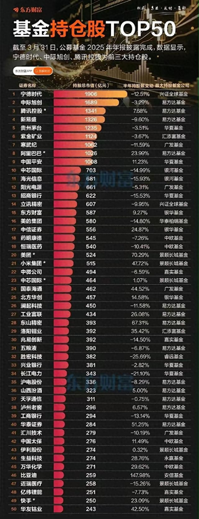 - 还有“不冷不热的中间派”:伊利股份、腾讯控股、紫金矿业等倡导,增减仓幅度不大,稳稳待在榜单前方,像市集里的“定海神针”。